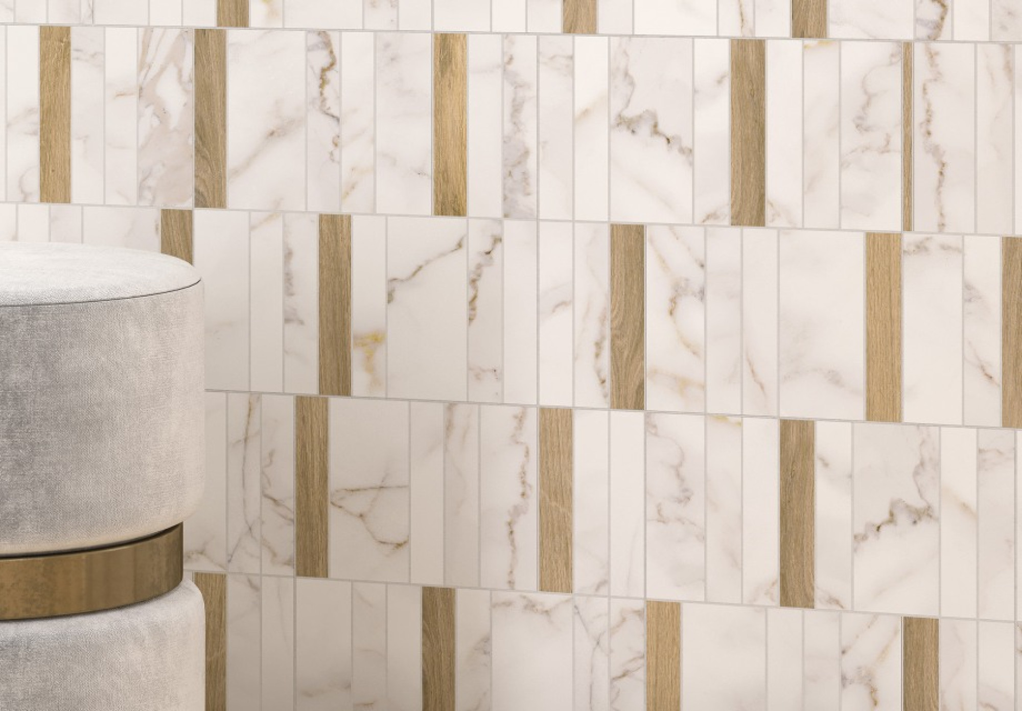 Коллекция керамогранита Wonder имитирует натуральный мрамор Calacatta Gold. Его тёплые прожилки в охристых и серых оттенках зачаровывают взгляд. А мягкое сияние сатиновой поверхности усиливает эстетический и эмоциональный эффект.