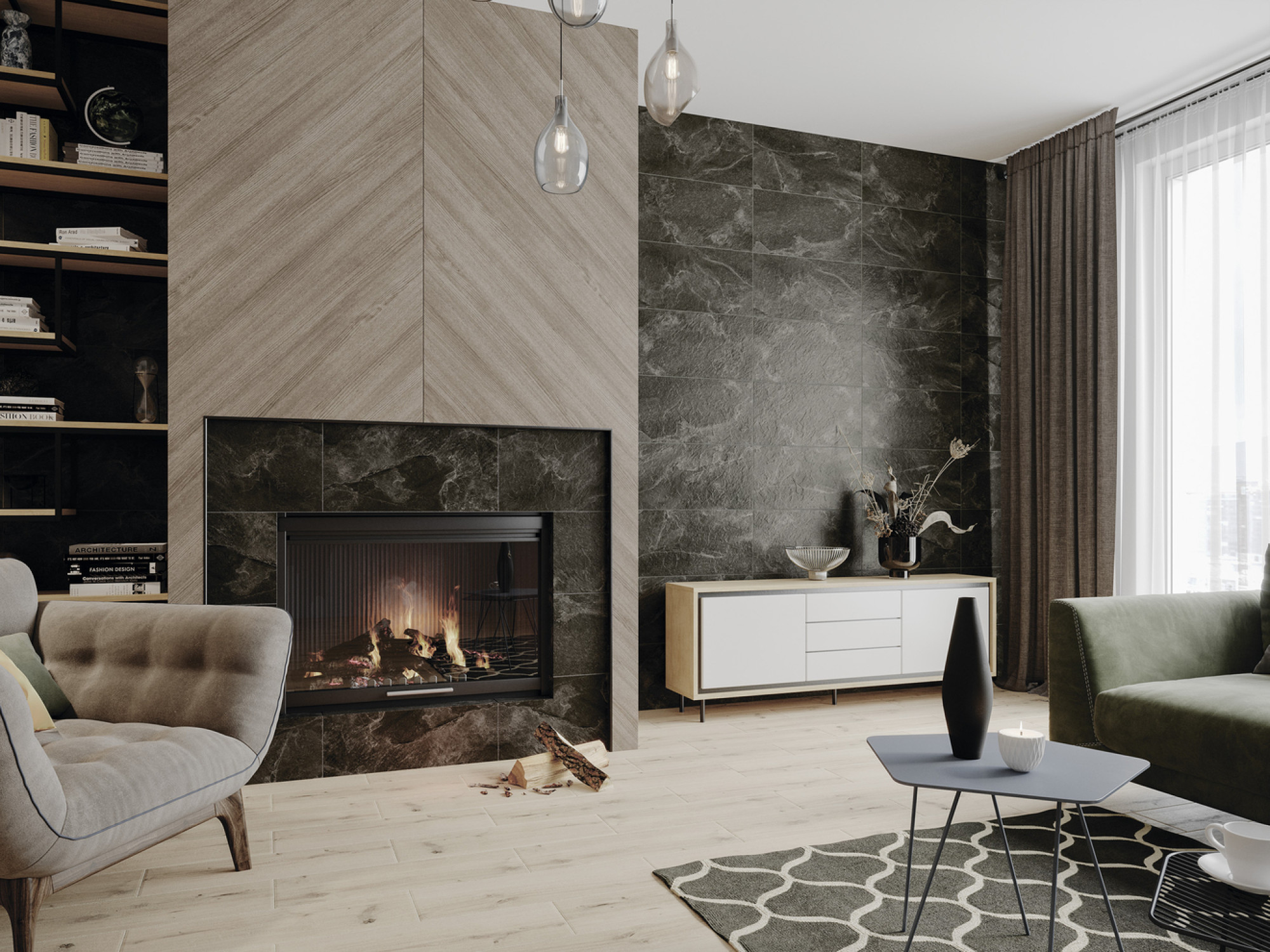 В керамогранит Infinity заложена вся красота природного сланца. Рельеф поверхности воспроизводит срез природного сланца с выраженной слоистой структурой, придавая помещению объём и подчёркивая глубину цвета. Идеальное решение для отделки стен и пола, выполненное в стильном тёмно-сером цвете.