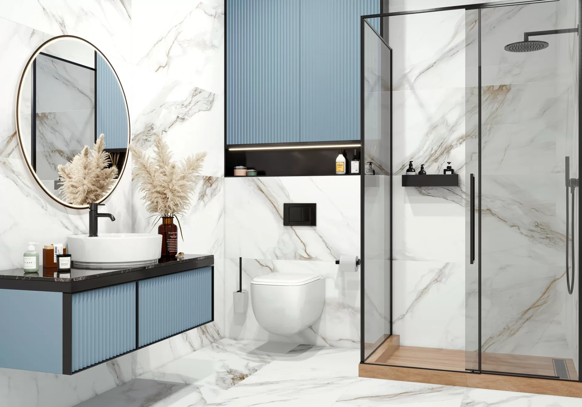 В дизайне большая часть архитекторов отдаёт предпочтение светлым оттенкам, таким как белый, светло-серый, бежевый. И этому есть вполне логичное объяснение — ведь светлые цвета визуально увеличивают объем и пространство помещения, а в сочетании с темными контрастными цветами возможно придать глубину и создать неповторимый стиль. Именно для такого случая дизайнеры бренда создали коллекцию белого мрамора Calacatta Andrea с эффектом карвинг, которая станет прекрасным компаньоном к темным акцентным камням и деревянным текстурам.