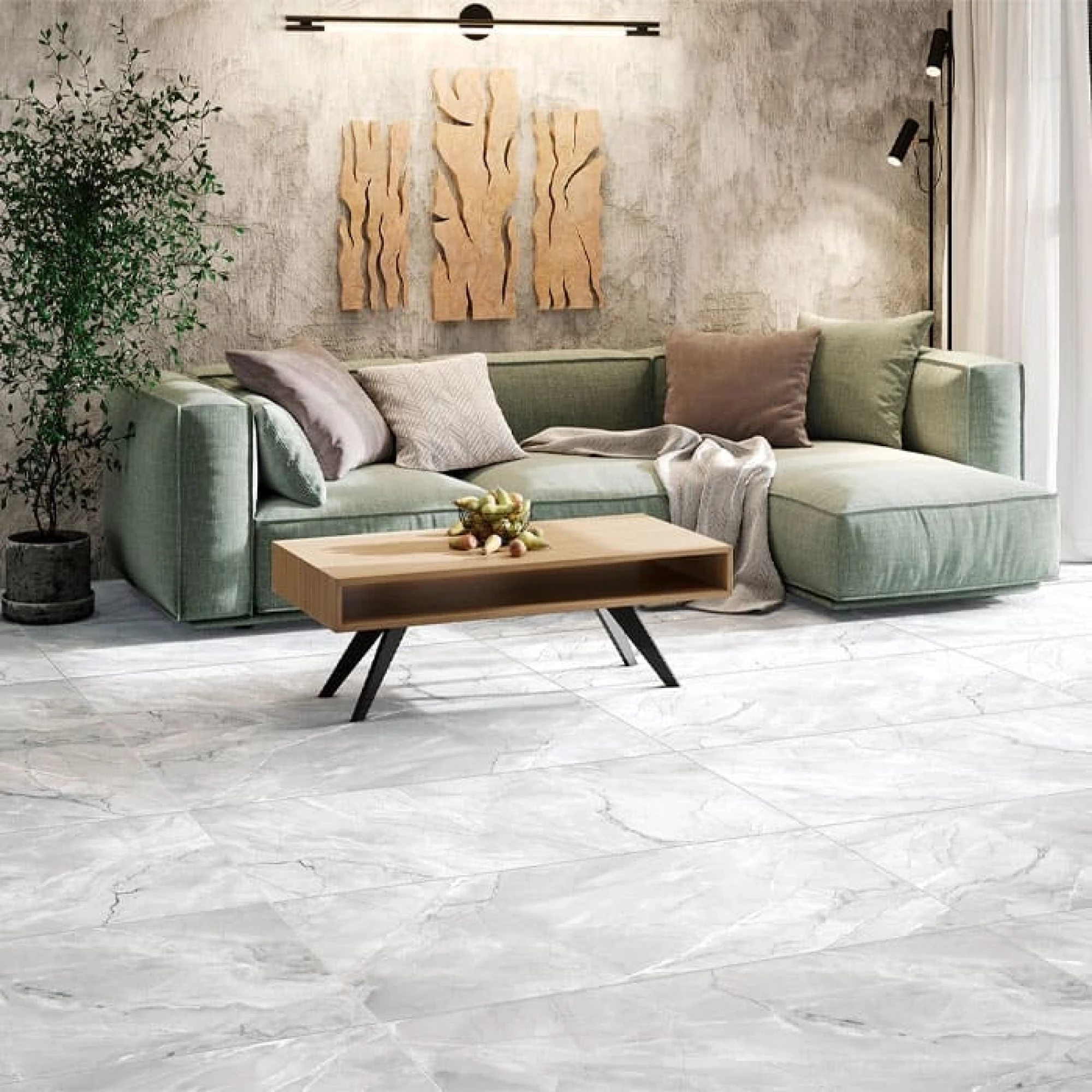 Керамогранит Canova представлен в двух серых оттенках с естественным узором редкого вида мрамора Pulpis. В природе такой камень встречается в оттенках от светло-коричневого до серого с белыми прослойками. Наиболее изысканной разновидностью считается насыщенный серый цвет с яркими белыми венами и лёгкой вуалью градиентных сизых полутонов. Такой дизайн легко впишется в современный и классический интерьер.