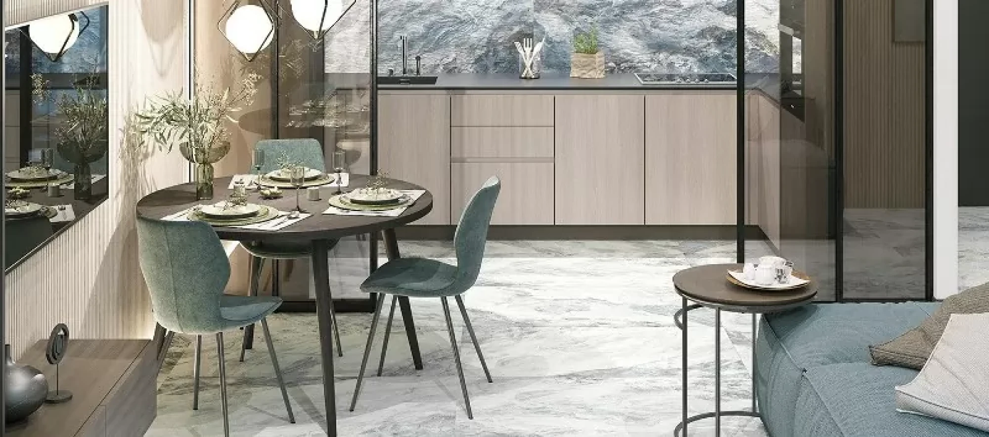 Многоцветный керамогранит Waterfall с мраморным рисунком в виде горной реки. Плавные градиенты этой текстуры, словно бурное течение мчит по глади мрамора, волнуясь и создавая затейливые узоры.