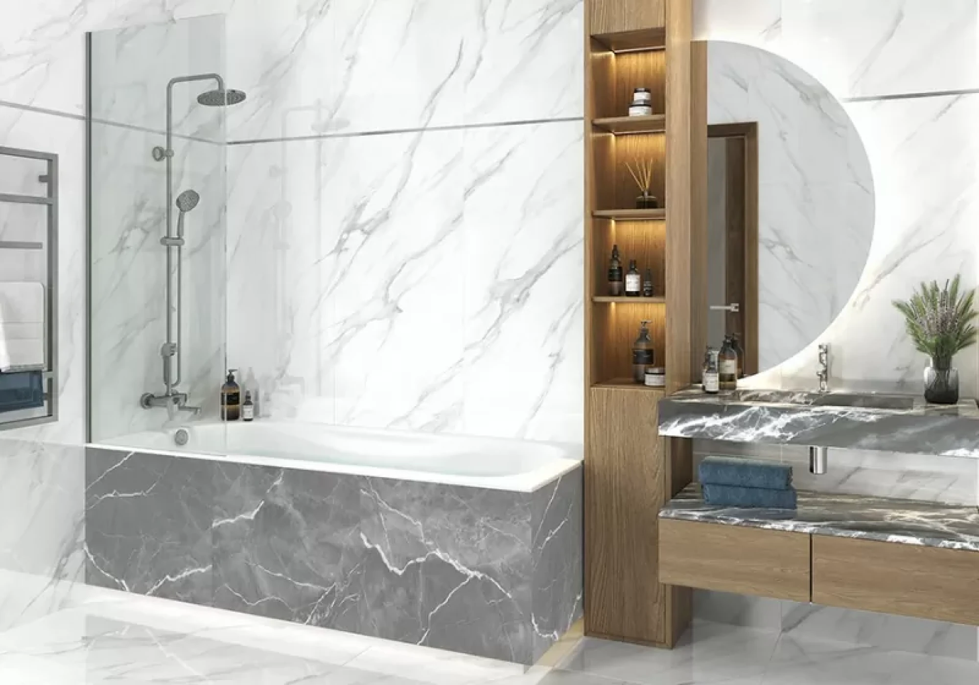 Текстура American Calacatta является разновидностью кристального белого мрамора Calacatta Ango. Это исключительный полупрозрачный белый камень со своеобразным ритмом преимущественно серых прожилок с небольшими золотистыми нотками. Его смелые узоры придают запоминающийся внешний вид, что делает его находкой для любителей белого мрамора. Он особенно хорошо подходит для отделки интерьера и экстерьера, стен и полов, помещения больших площадей, для изготовления декоративных изделий и других дизайнерских проектов.