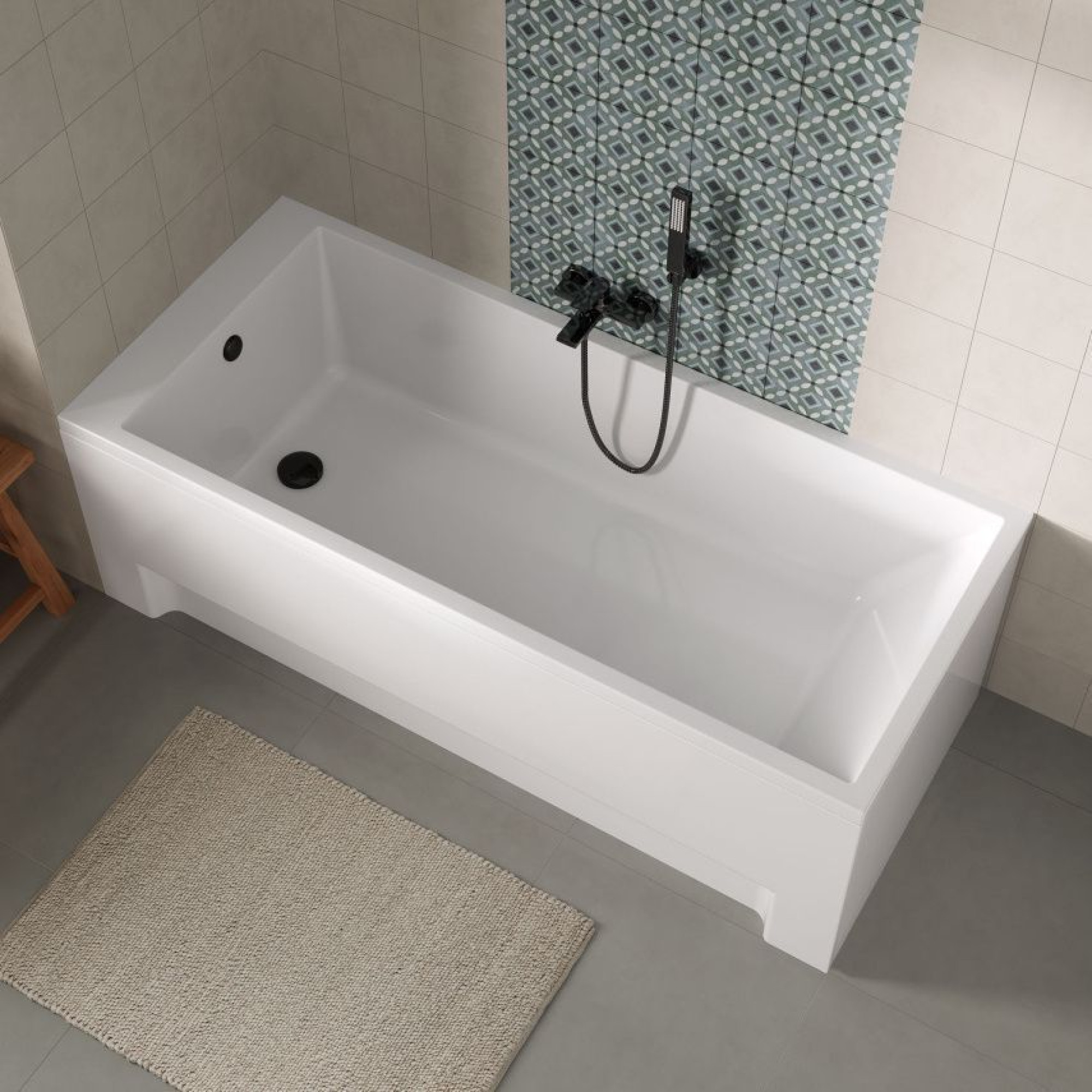 Наружная форма прямоугольная, материал акрил, длина 170 см, ширина 70 см, объем 230 л.